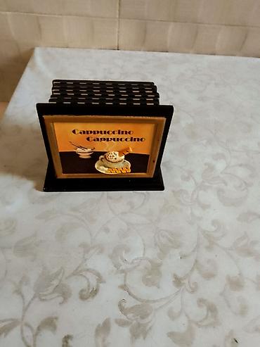 - Komplet sadrži 6 kvadratnih podmetača i drveni stalak/kutijicu za odlaganje.