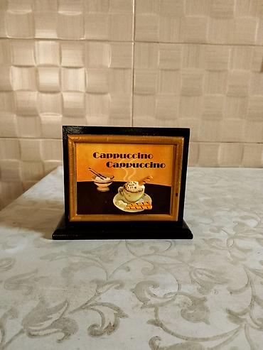 - Dizajn: retro kafeni motiv sa natpisom “Cappuccino”, u kombinaciji žute, crne i braon boje, sa šah-ramom oko ivica.