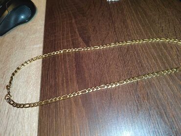 Zlatno-tonirana narukvica od hirurškog čelika sa centralnim elementom u obliku “nazar” oka. Medallion je u obliku badema, ispunjen bisernim sedefastim umecima i akcentovan sitnim providnim cirkonim...300 RSD