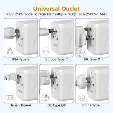 - Svetski adapter 4-u-1: podržava tipove utikača EU (C), UK (G), AU (I) i US (A) – pogodan za više od 150 zemalja.