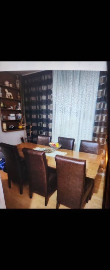 Kuhinjski elementi – komplet visećih i donjih ormarića - Materijal: drvena fronta u toploj nijansi oraha; korpusi u beloj boji - Gornji elementi: segment sa staklenim vratima (vitri na) + segment ...