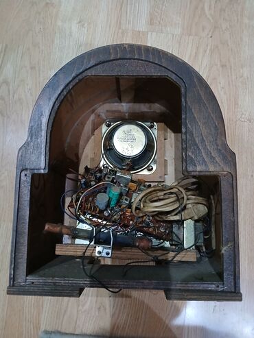 Napomena: Fotografije prikazuju spoljašnji izgled i kompletan uvid u unutrašnju elektroniku i zvučnik. Idealno za ljubitelje starinskih radija i DIY restauratore koji žele autentičan “cathedral” model u punom drvetu.