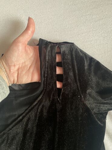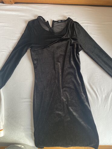 Crna mini haljina od somota (velur), brenda Sinsay, veličina XS.