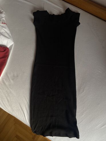 Crna rebrasta haljina uz telo
