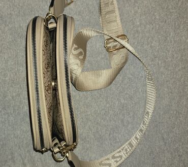 - Kaiš: širok, tekstilni, sa GUESS natpisom, podesive dužine; zlatne kopče i karabineri za lako skidanje