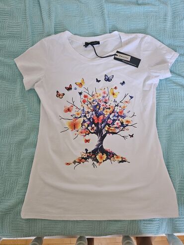 Dve ženske majice kratkih rukava: 1) Bela majica sa printom drveta