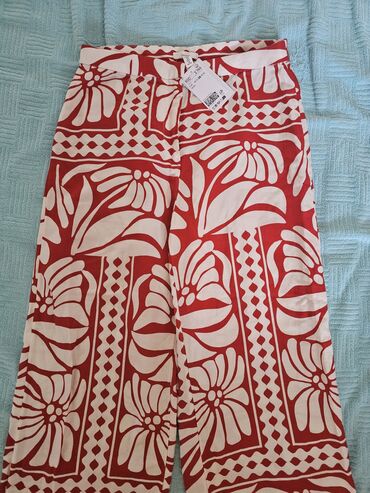1) Crveno‑bele pantalone sa floralnim/geometrijskim printom