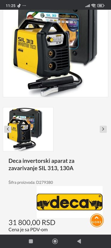 Pogodno za zavarivanje klasičnim obloženim elektrodama na kućnim i terenskim poslovima, održavanju i lakim radovima u radionici. Evropski proizvod (Deca). upotrepljeno 2 puta razlog prodaje kupovina co2