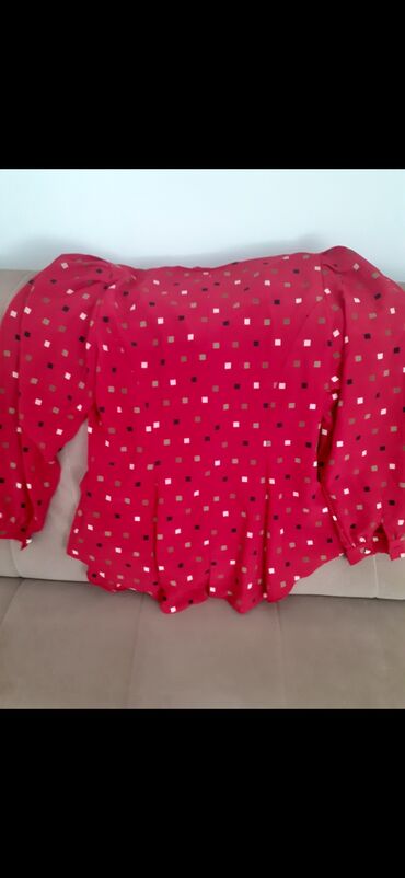 Ženska bluza – fuksija/roze podloga sa sitnim kvadratićima (beli, crni i maslinasto zeleni).