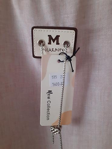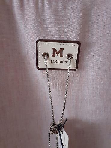 - Dekor: centralna pločica sa slovom “M” i ukrasnim metalnim lancem/privjeskom