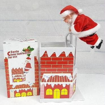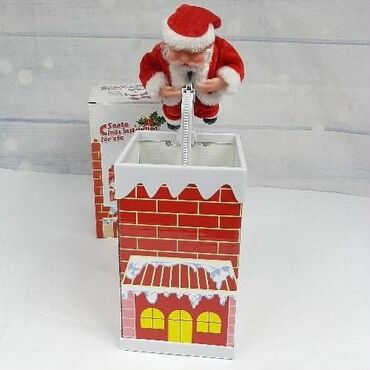 - U pakovanju: dekorativni dimnjak sa mehanizmom i figura Deda Mraza. Na kutiji su priložena uputstva „Santa Claus instruction for use“.