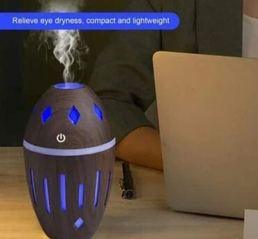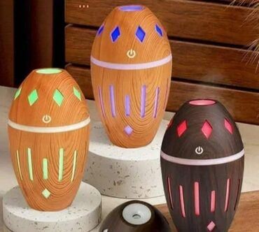 Aroma difuzer i mini ovlaživač vazduha u obliku jajaste lampe sa efektom drveta.