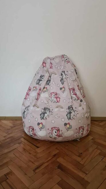 - Mekana i udobna fotelja u obliku “sedi na mene” vreće, idealna za čitanje, igru i odmor u dečijoj sobi.