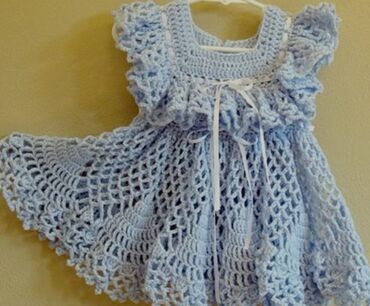 - Heklane haljinice za bebe/devojčice, nežnih pastelnih tonova. Modeli sa bogatim talasastim šarama, mrežastim suknjama i volanima. Gornji deo kompaktan radi udobnosti, struk naglašen ukrasnim trakama.