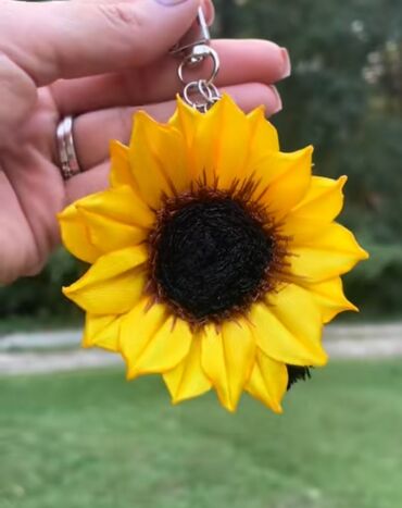 - Materijal latica: satenski/tekstilni aplike koji daju sjaj i punoću cveta; centralni deo suncokreta od teksturirane tkanine.