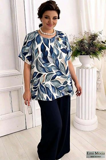 ✅Cena 3700din ✅Vel 0XL,1XL,2XL,3XL,4XL ✨Damski komplet – elegantna bluza i pantalone širokih nogavica✨