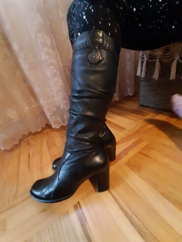Kožne ženske čizme – broj 39 - Materijal: prava koža, glatka završnica - Boja: crna - Visoka platforma/deblji đon sa grubim profilom za stabilnost - Zatvaranje: bočni rajsferšlus za lako obuvanje ...
