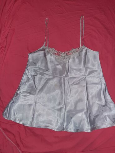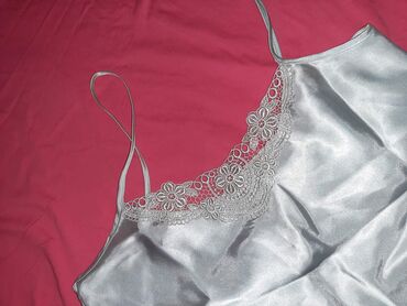 Bela ženska spavaćica od satena sa čipkastim gornjim delom, dizajnirana sa V-izrezom i tankim bretelama. Donji deo košulje je napravljen od glatkog satena sa prozirnim mrežastim panelima na porubu....5 500 RSD
