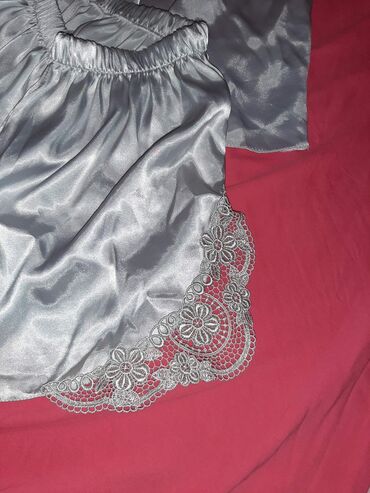 Elegantan ženski komplet koji se sastoji od spavaćice i ogrtača, oba u teget boji. Spavaćica ima plise donji deo i gornji deo sa čipkom, dok ogrtač ima čipkaste detalje na rukavima. Izrađen od glat...5 500 RSD