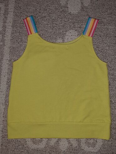 Dečija tamnoplava potkošulja/majica bez rukava. - Veličina: 7–8 godina - Dužina približno 50 cm (prikazano metrom na fotografiji) - Okrugli izrez, širi breteli - Mekan, rastegljiv pamučni materija...
