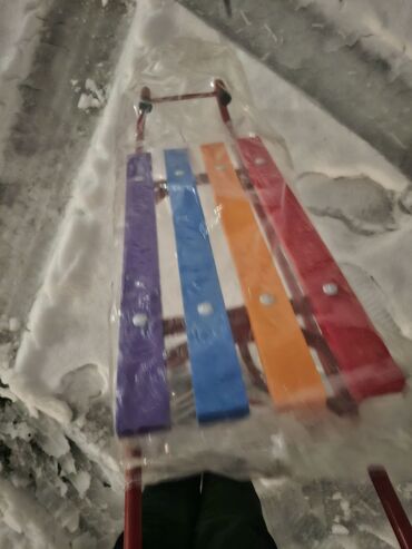 Dečije sanke sa metalnim ramom i šarenim drvenim letvicama ik (ljubičasta, plava, narandžasta, crvena).
