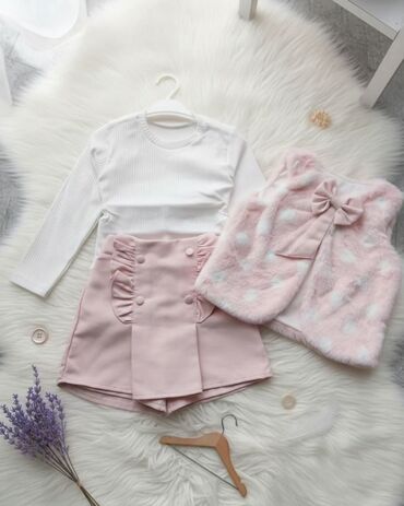 Kompletic za devojcice ✨🤎 3u1 komplet za male princeze 🤎✨ Cena 3650 Sadrži braon suknjicu–šorc od velura, udobnu rebrastu polu rolkicu od pamuka i mekani krzneni prsluk ukrašen mašnicama u boji suk...