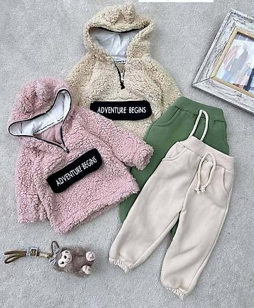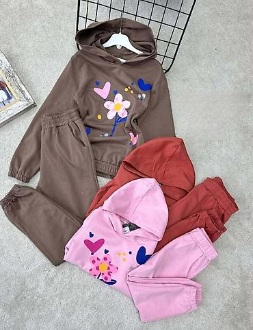 - Dvoddelni set: dukserica s kapuljačom + donji deo sa elastičnim pojasom i manžetnama.
