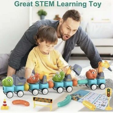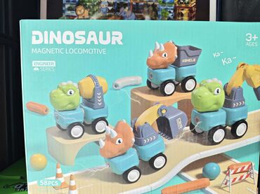 - Kreativan set vozila sa dinosaurusima i građevinskim mašinama koji se spajaju magnetima. Vagoni i priključci se lako povezuju u “lokomotivu” ili odvajaju za samostalnu igru.
