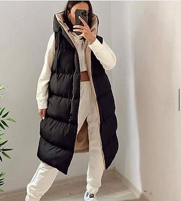 Duga ženska puf jakna-prsluk sa kapuljačom - Model: duži prsluk do