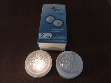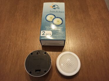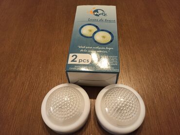 DrugoDve male zidne lampe na baterije (AAA 1,5V) Mogu da posluže kao noćne lampe (pale se pritiskom na plastični difuzor svetla), ali i kao osvetljenje za ormare i sl. Cena je za obe lampe.