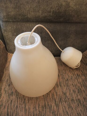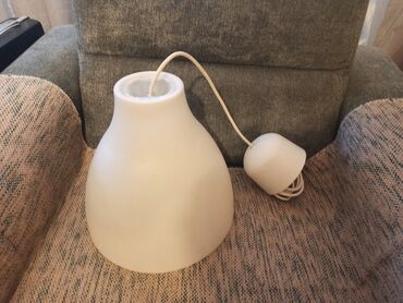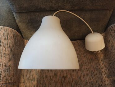 LusterLep beli, plastični luster prečnika 28cm, visine 28cm. Veoma lak i zgodan za zamenu sijalice
