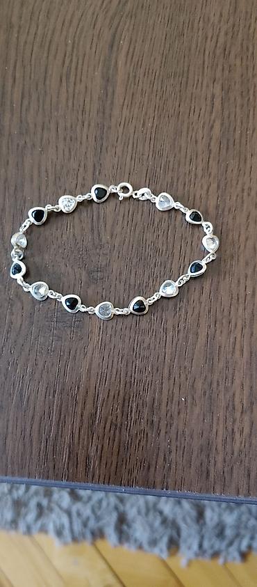 Narukvica, boje srebra, od hiruskog celika, duzine 21cm, sa belim kamenom, jednom nosena.
