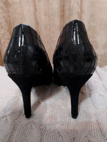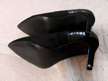 Crne klasične salonke – Sinsay, veličina 38 - Model: špicasti vrh, zatvorena peta - Materijal: lak-koža (sjajna završnica) - Boja: crna - Štikla: tanka, srednje visine (približno 7–8 cm) - Unutra:...