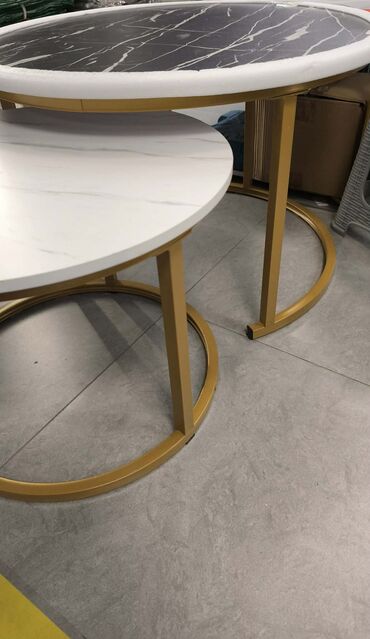 Set od dva okrugla klub stola – moderan dizajn sa efektom mermegsra