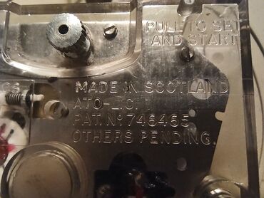 Stariji zidni sat prečnika 19/17cm, proizveden u Škotskoj. Napaja se srednjom baterijom od 1,5V i ima mogućnost podešavanja, za razliku od novih, kvarcnih. Koliko sam uspeo da proverim tačan je.