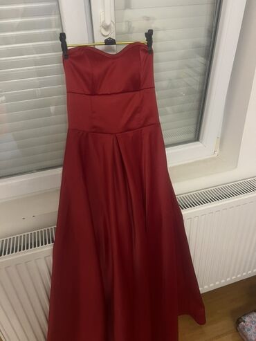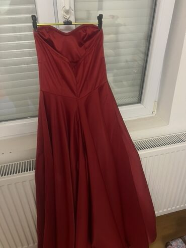 Svečana duga haljina u crvenoj boji sa korpičastim gornjim delom i visokim šlicem na nozi. vel S/M za ozbiljne kupce saljem snimak+381 64 53657xx