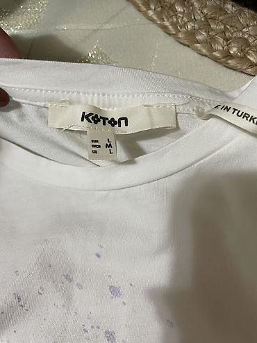 Ženska garderoba – set majica i bluza - Bela pamučna majica sa kratkim rukavima i okruglim izrezom; dekorativna mašna na levoj strani grudi i diskretan ukrasni štep dijagonalno preko ramena. Brend...