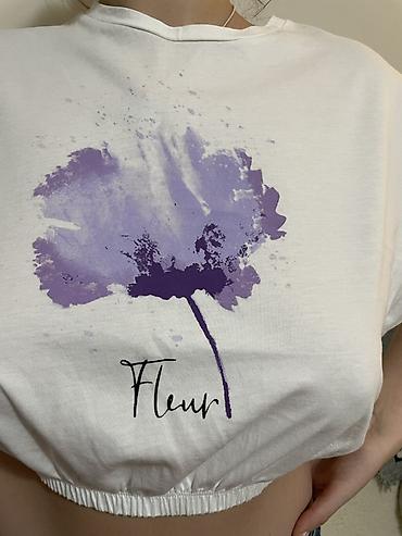 Ženska kratka majica (crop) dužina sa lastišem u struku, opušteni široki rukavi bez manžetni, okrugli izrez. Koton vel L