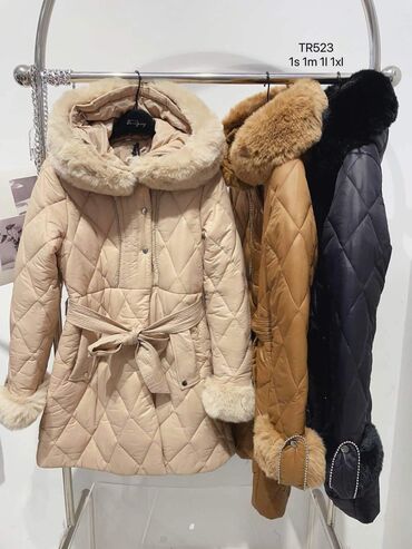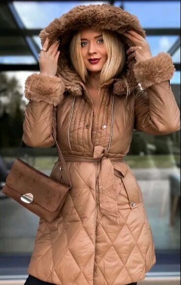 Ženska jakna sa krznom i pojasom - Model: 2973 camel S, M, L XL - Kroj: strukirani kaput-jakna sa pojasom koji se skida, naglašava struk - Materijal: kombinacija pufastih panela i bogatog veštačk...