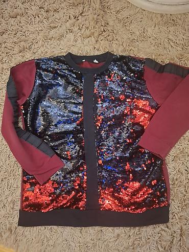 Kompletna ženska trenerka koja se sastoji od gornjeg dela i donjeg dela. Gornji deo je ukrašen šljokicama u kombinaciji crne, plave i crvene boje, sa crnim prugama na rukavima i po sredini prednjeg dela. Donji deo trenerke je bordo boje, sa elastičnim manžetnama na nogavicama koje su takođe ukrašene šljokicama. Trenerka je pogodna za svakodnevno nošenje ili sportske aktivnosti.