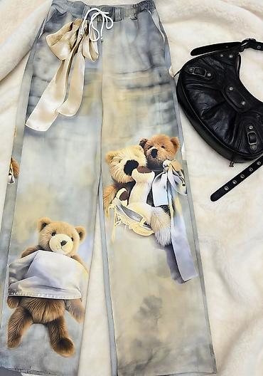 Ženske široke pantalone sa printom plišanih meda - Model: ležeran