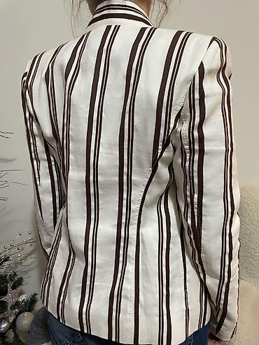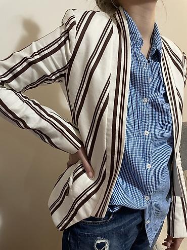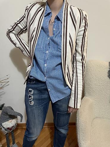Ženski bež blejzer sa braon prugamа, Ps fashion vel 38. Strukirani blejzer bez kopčanja. Nov