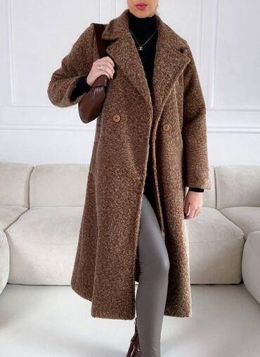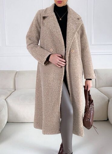 Žensko dugačko kaput od bukle tkanine - Klasičan kroj sa rever