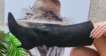 Ženske visoke čizme do kolena, crne. U savršenom stanju, nošene samo po sobi, prodajem zato što su mi male. - Materijal: gornji deo kombinacija glatke eko-kože i elastične tekstilne strane koja ...