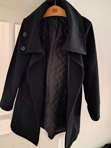 O trošku kupcaZenskii crni kaput, dvoredno kopčanje sa šest dugmadi. Veličina: XXL (oznaka na etiketi). Sastav materijala: 80% vuna, 20% poliester. Unutrašnjost je prošivena (quilt) postava za dodatnu toplotu i udobnost. Široka rever/kragna koja se može podići za zaštitu od vetra. Dva spoljašnja ušivena džepa sa strane. Klasičan, elegantan kroj do ispod kukova, pogodan za poslovne i svakodnevne kombinacije. Model: ART 437. Na etiketi su naznačene upute za održavanje (simboli). Crna boja.