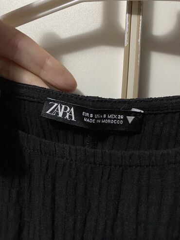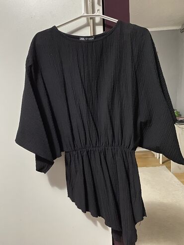 ZARA ženska bluza/tunika na dugmad - Boja: crna - Kroj: blago A-linija sa širim, naboranim donjim delom; V-izrez - Rukavi: dugi - Kopčanje: prednja dugmad u kontrastnoj, svetlijoj nijansi (5 komad...