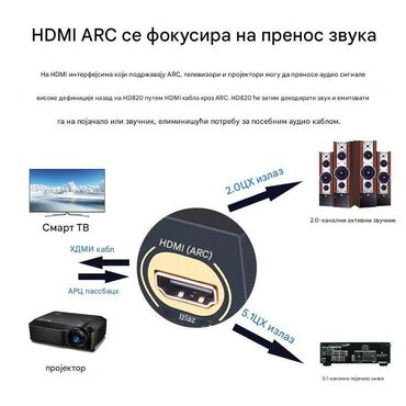 - Повезивање: телевизори, рачунари, сет‑топ боксови, мрежни/медија плејери, конзоле, Blu‑ray плејери, телефони преко Bluetooth‑а