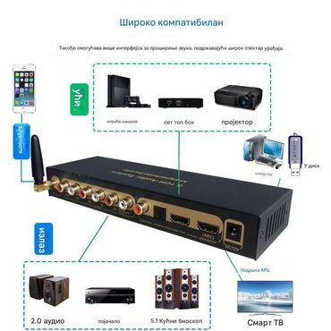 Идеално за кућни биоскоп и надоградњу постојећих стерео/5.1 система уз вишеструке улазе и прави 5.1 аналогни излаз.