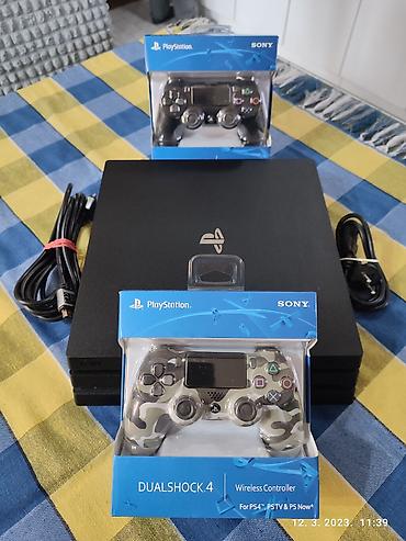 +52 igrice. PS4 PRO-Najbolja i najača verzija Konzole Sony Playstation 4 PRO sa fabrickim Hard Diskom od 1TB (1000gb). Konzola poseduje sistem 12.0 u kome sam ubacio 52 Najnovije igrica. Konzola nije nikada otvarana, čačkana i slično, radi tiho i nema brujanja ventilatora i na jačim igricama. CD citac radi odlicno bez seckanja bagovanja i slicno. Garancija na Konzolu je 3 meseca. Uz Konzolu ide i :