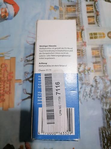 - Napomena na ambalaži: prema EU Novel Food regulativi metilensko plavo u Nemačkoj i EU nije odobreno kao hrana ili dodatak ishrani. Metilensko plavo snažno boji.
